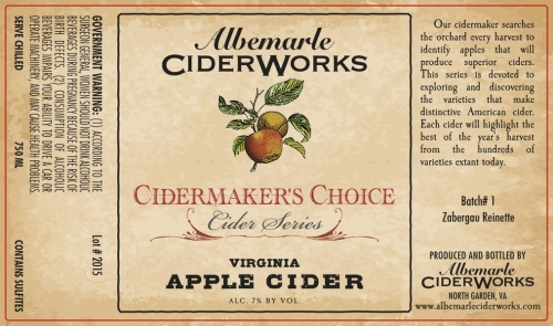 Dry single varietal of Zabergau Reinette. Earthy and tart with notes of lemongrass and pear.