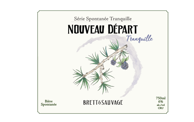 Après vous avoir présenté la spontanée Nouveau Départ, voici maintenant notre version Tranquille de celle-ci. Bière de fermentation spontanée 2019, ayant séjourné en barrique de chêne, non gazéifiée, macérée avec des mûres et des pousses de mélèze.