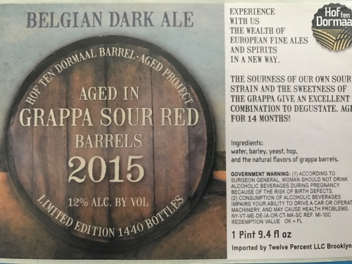 Пиво Barrel Aged Dark - Grappa Sour Red - Brouwerij Hof Ten Dormaal