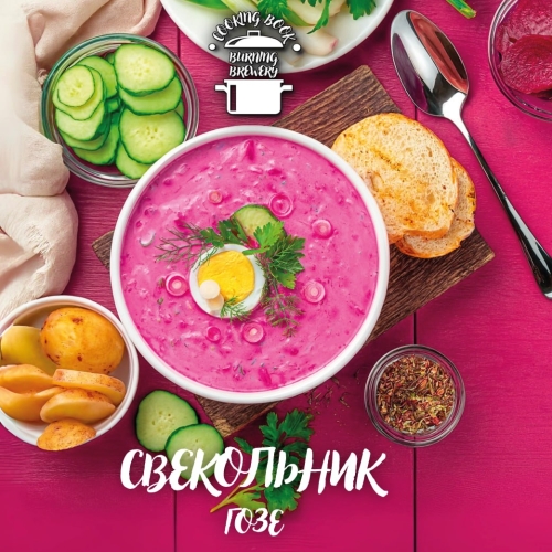 Встречаем бабье лето с гозе "Свекольник". Это яркий и освежающий гозе с насыщенным ароматом свежей свёклы, огурца, зелени, обжаренного лука и чеснока, вплетёнными в кисло-соленую основу с лёгкой перечной пряностью. Во вкусе ощущается нежная сладость свёклы, свежесть огурца и зелёных трав, пикантность жареного лука и чеснока, а также солоноватость, создавая гармоничный и необычный профиль, напоминающий вкус традиционного холодного супа.