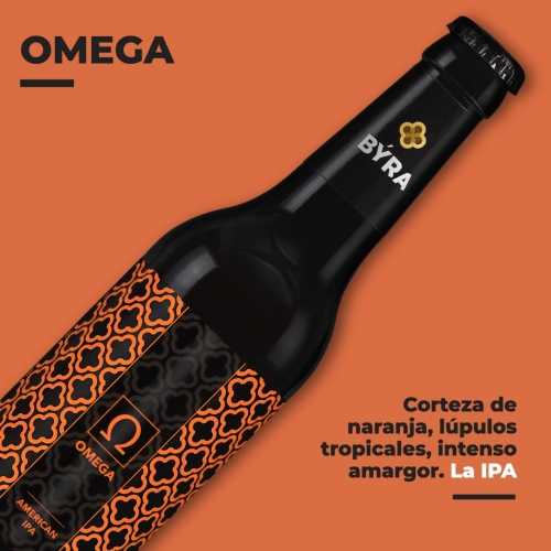 Cerveza Artesanal, 100% natural. Doble malta con Dry Hopping. BÝRA OMEGA es una cerveza con un amargor característico y con un marcado carácter cítrico, donde destaca la naranja amarga, rozando un amargor aproximado de 50 IBUs. Una auténtica American IPA. Descubrirás una cuidadosa selección de maltas de cebada y trigo, levaduras y lúpulos en perfecta armonía. Sírvela en copa y descubre su intenso color, su densa y persistente espuma, con 6,2º de alcohol. Una nueva y exquisita cerveza. Cerveza sin pasteurizar. Contiene Gluten.