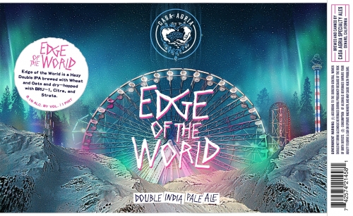 Edge of the World is a Hazy Double IPA brewed with Wheat and Oats and dry-hopped with BRU-1, Citra, and Strata.