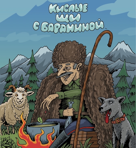 Капуста квашеная, капустный рассол, картофель, морковь, черный молотый перец, чеснок, лук, укроп, баранина, кавказские специи, соль.