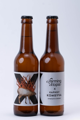 Функциональный напиток - Карибу Комбуча с экстрактами грибов от Farming Utopia - экспериментального проекта, построенного вокруг городского формата культивации редких грибов. Ежовик гребенчатый - натуральный ноотроп, формирующий нейронные связи, повышает концентрацию и помогает усваивать информацию. Кордицепс - адаптоген, увеличивающий поглощение кислорода клетками. Он тонизирует и увеличивает выносливость при занятиях спортом.