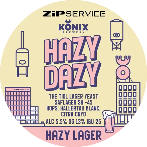 Hazy dazy лагер сваренный на инновационных тиоловых дрожжах совместно с лабораторией Fermentis и компанией Zip Service. Мутный, яркий хмелевой аромат hallertau blanc и Citra Cryo. Вкус мягкий, с легкой горчинкой.