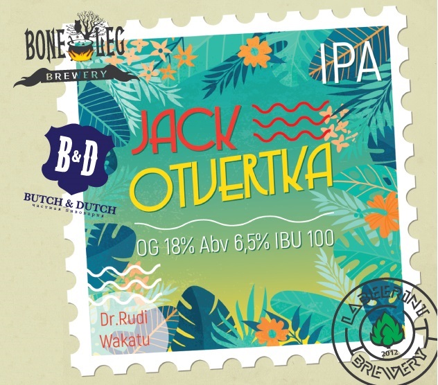 Vermont IPA w. NZ hops dr.Rudy and Wakatu. Collab Butch&Dutch; wits Boneleg's & LaBEERint Breweries.