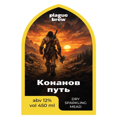 Конанов путь - традиционный игристый сухой мид, без добавок, на основе разнотравного мёда центральной полосы России, который выдерживался более 4х лет
