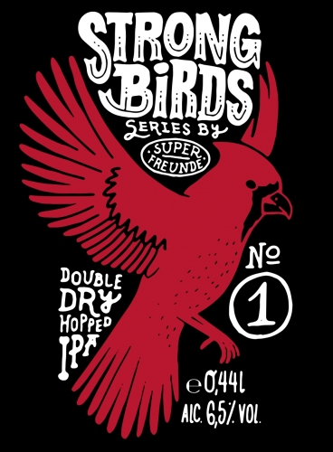 We are all Strong Birds! A double dry hopped IPA w/ HBC 472 & Mosaic. This bird has a nice flavor of coconut and a smoothy, fruity aftertaste - 6,5 % alcohol, slightly bitter. Fly, fly my bird!