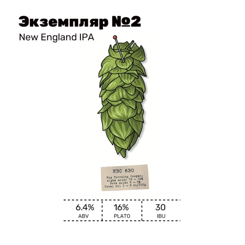 HBC 630 — экспериментальный сорт, выведенный Yakima Chief Hops и BarthHaas в штате Вашингтон. Несмотря на умеренные показатели кислот и масла, шишки этого хмеля дарят сложную ароматическую палитру, от малины и вишни до сливочных ноток персика и банана.
