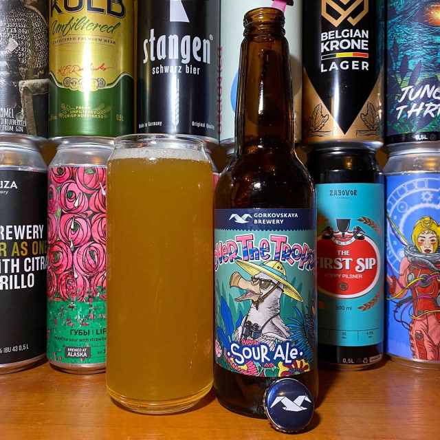 Непрозрачное пиво золотисто-янтарного цвета. Аромат, тело и вкус напоминают один-в-один мултифруктовый сок, который одновременно и сластит, и кислит, но без яркой выраженности. На 6.8% крепости нет и не намёка, поэтому в жару можно пить литрами.